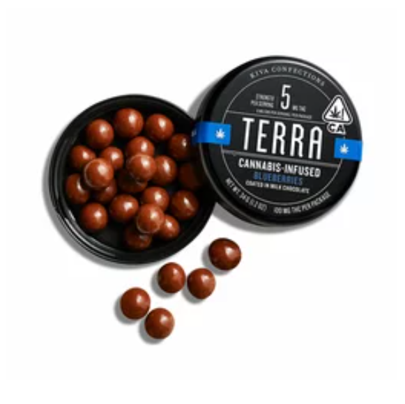+ Free Shipping- Blueberry Terra Bites are the newest innovation in KIVA’s line of best-selling Terra Bites. Using a traditional 24-hour panning process, dried US-grown blueberries are dusted with cocoa powder and finished with a generous coating of KIVA milk chocolate. Each 5mg of THC per bite is polished to sweet, tart, irresistible, perfection.